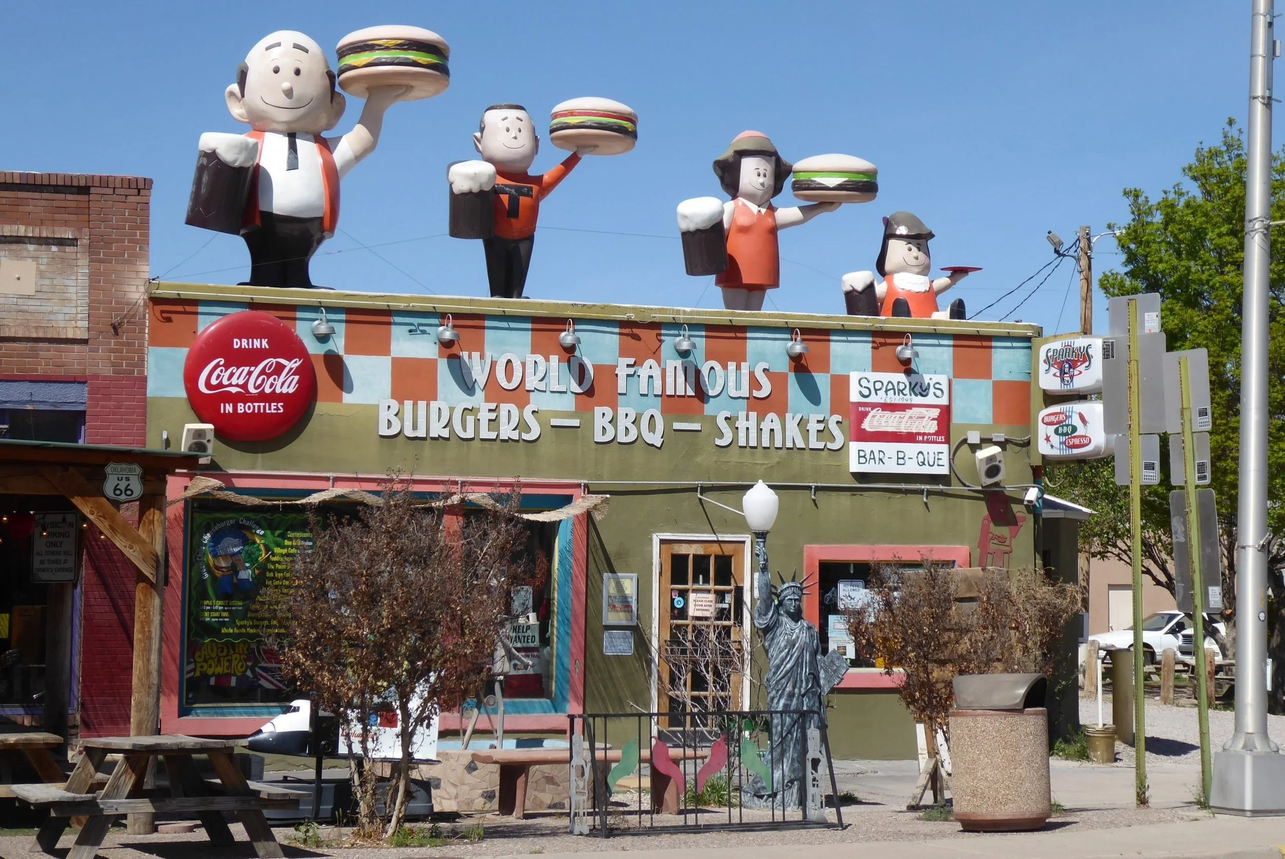 But Hatch proved to be a real surprise. As well as being famous for its chillies, the town also seems to have captured the market in giant roadside cartoon characters with the main junction boasting an enormous Uncle Sam, T Rex, Robin Hood and Yogi bear. It was all a bit bizarre, but very colourful as were many of the shops and businesses, many of which seemed to specialise in brightly coloured pots or giant metal sculptures of flowers and assorted creatures,