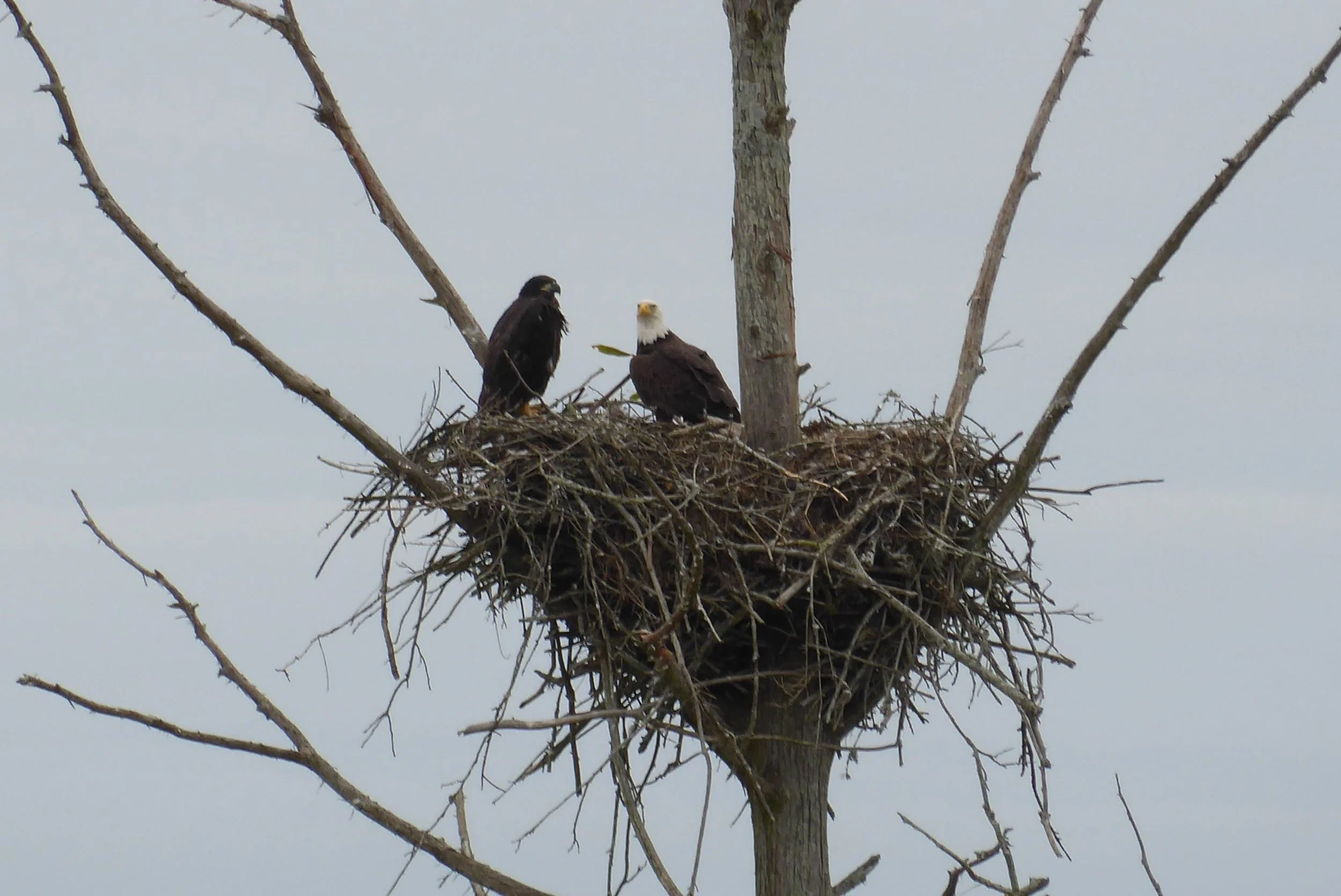 It’s an incredible feat of engineering, but as we rode across the levee and towards the spillway itself our eyes were on the lookout for a pair of American Bald Eagles which Bear had told us were nesting in the area. Four and a half miles out of town and the nest was exactly where he said it was. There, balanced in the branches of a tree standing almost alone in the floodwaters, was the unmistakable sight of not one, but two of the majestic birds - one a dark coloured juvenile which was almost as large as its parents.