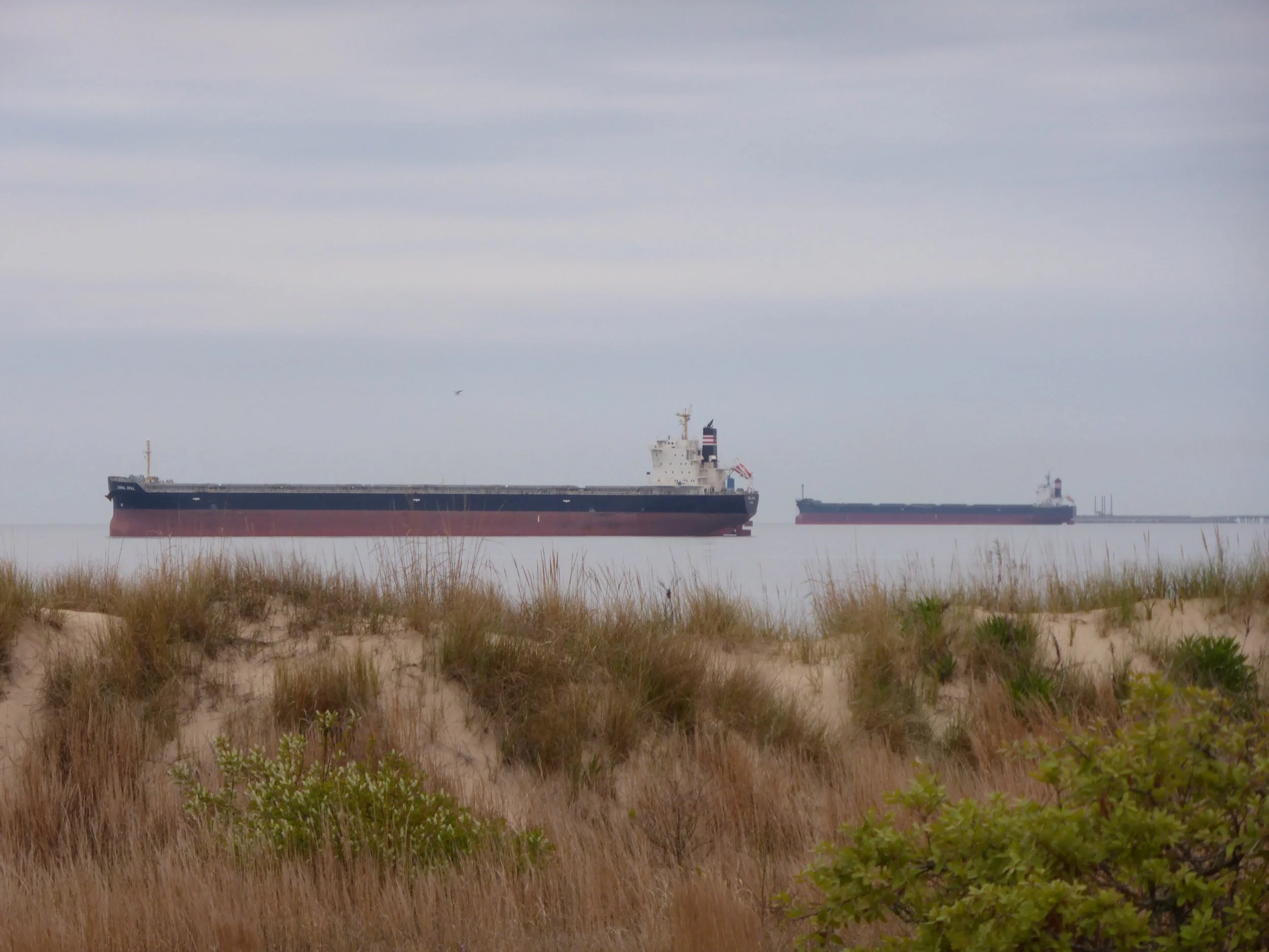Inevitably we arrived late and ended up erecting new tents for the first time in the dark (Terry's top tip: don't do this). A stunning spot, nestled under the trees and wild honeysuckle with the beach just a stones throw across the dunes. Centuries ago native people would have used canoes to navigate across the bay, today it's populated by huge ships at anchor, with supplies for the nearby cities of Richmond and Baltimore.