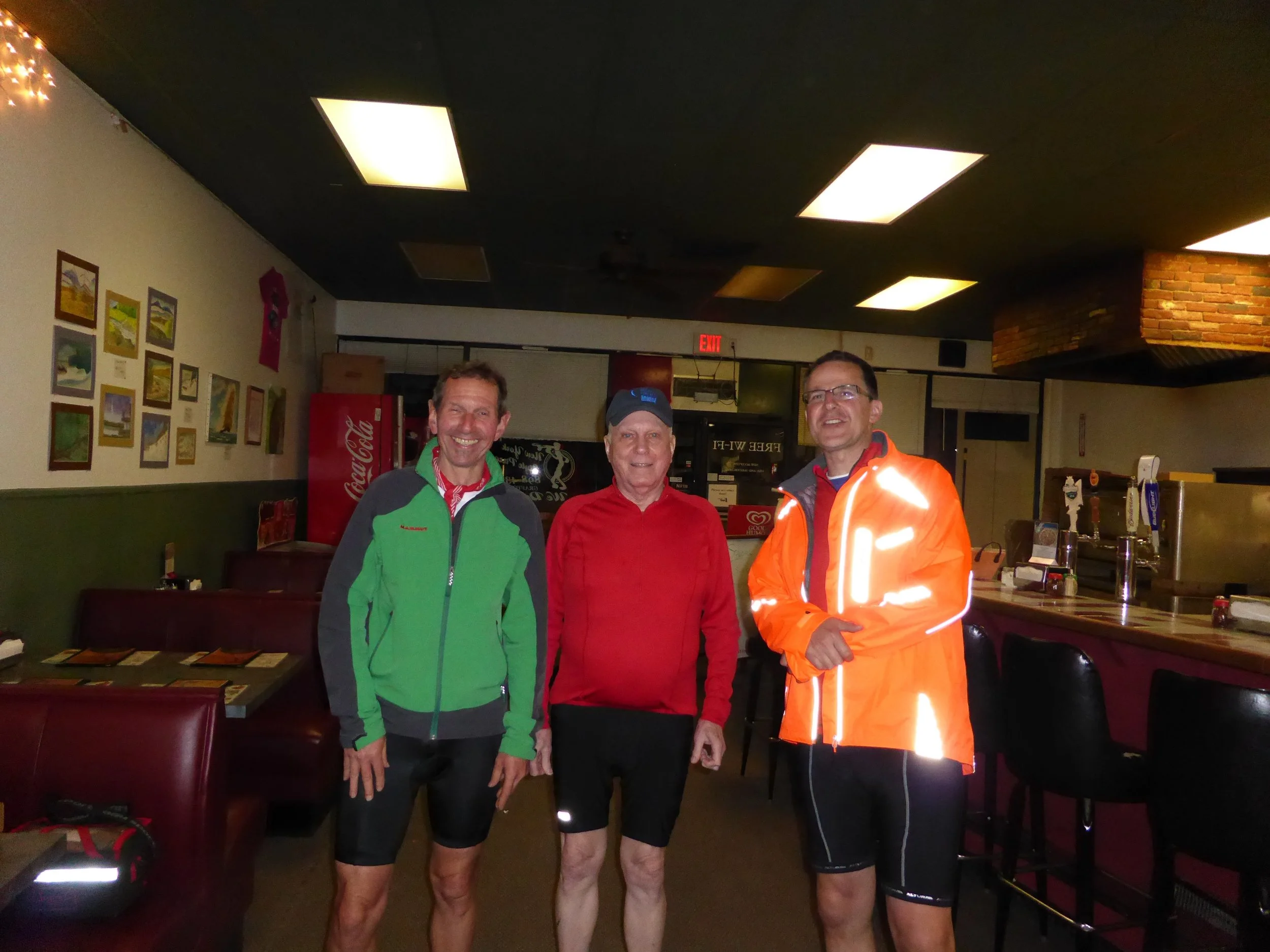 It must have worked because we stopped getting lost and eventually made it to Yorktown, by which time it was dark and we still had nowhere to stay. Well I don't know what the lady in Wendy's did, but standing in the car park were three local cyclists who had been on a club run. John Parker, a retired engineer from nearby Seaford, who once worked at NASA Langley, not only cycled with us to a local hotel (that allowed the bikes in the room) he also the drove us five miles to a local pizza restaurant where we all enjoyed a meal together before he drove us back to the hotel. What incredible hospitality - something that seems common around theses parts. Thanks John!
