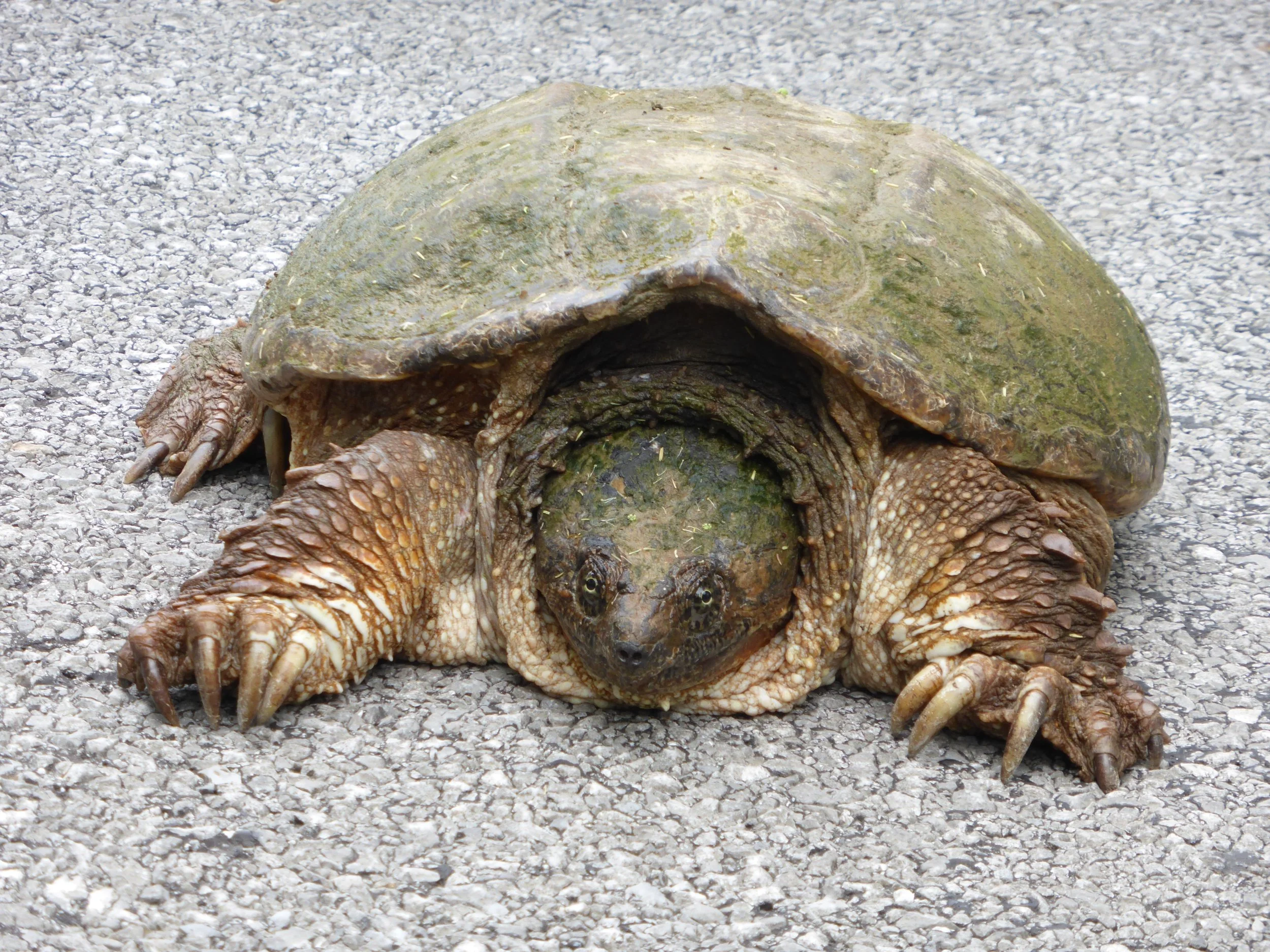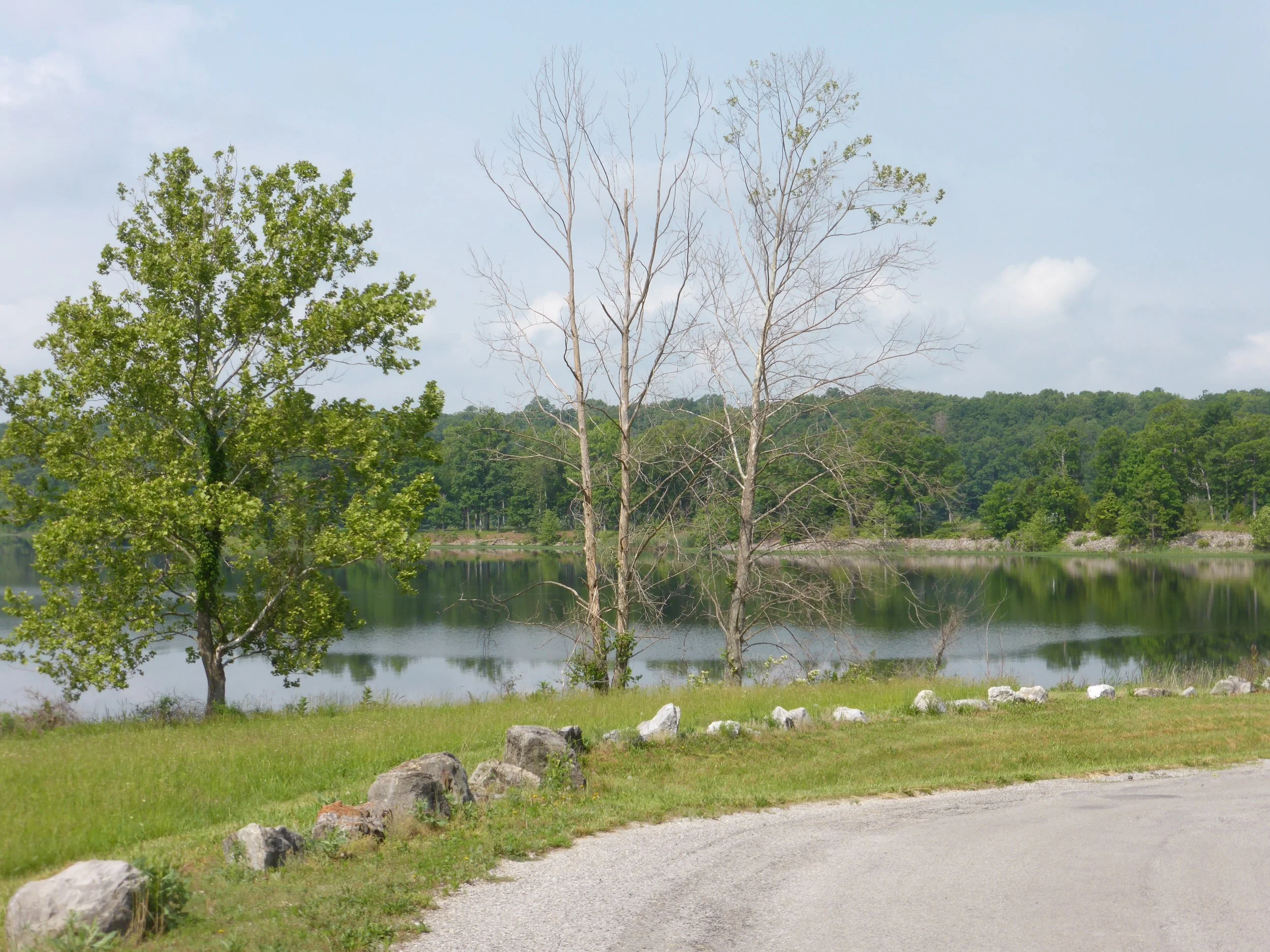 The day began with much gentler cycling, through Crab Orchard National Wildlife Refuge, laced with some beautiful lakes with evocative names like 'Little Grassy Lake' and 'Devil's Kitchen". Found a large mean-looking turtle in the road which we are pretty sure is an American Snapper. If so they can be pretty aggressive with their armoured tail, so we kept our distance.