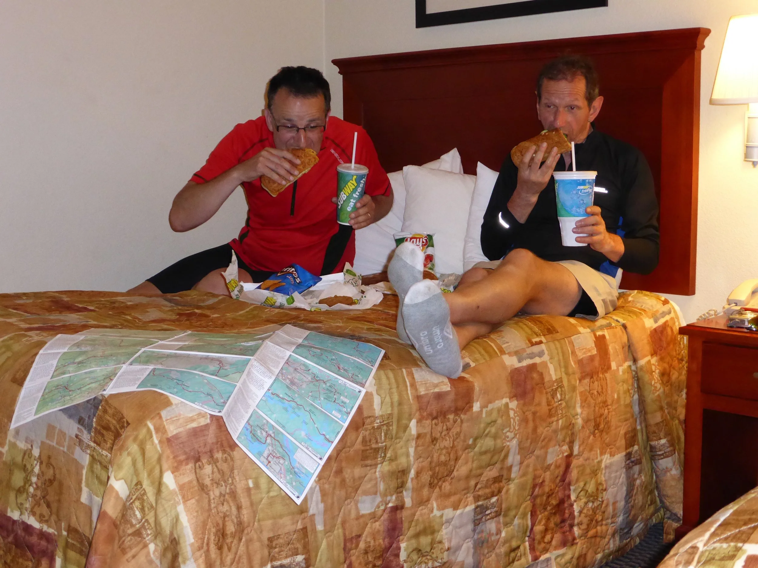 We got to Charlottesville just as it shut up shop and then due to a slight inability on my behalf to read English the planned campsite wasn't just down the road, but was in fact best part of 10 hilly miles away. Not going to happen. Ended up blowing what seemed like a wad on a cheap hotel out in Nowheresville and then having to leg it across a six lane highway to a Subway to get some food! Desperate men take desperate measures.Just in case you were wondering .... we both have sore bottoms.