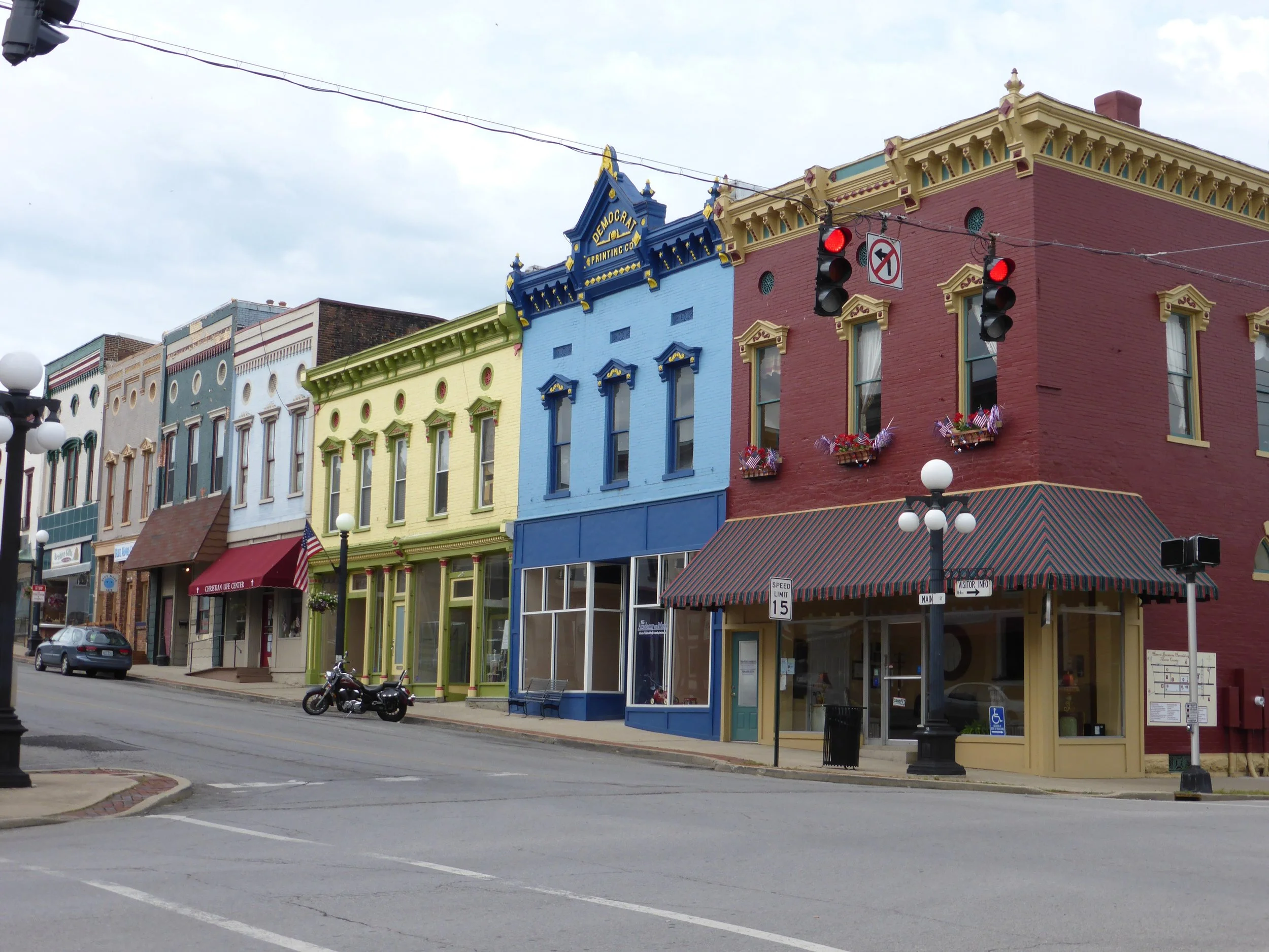 More appealing was a local coffee shop in the centre of town where we chatted to a young local couple who'd brought their toddler out for a meal. All around were photos of the town throughout the years - a real community spirit with some interesting old buildings. But even here the power of Walmart had sucked a lot of the trade onto the Interstate.