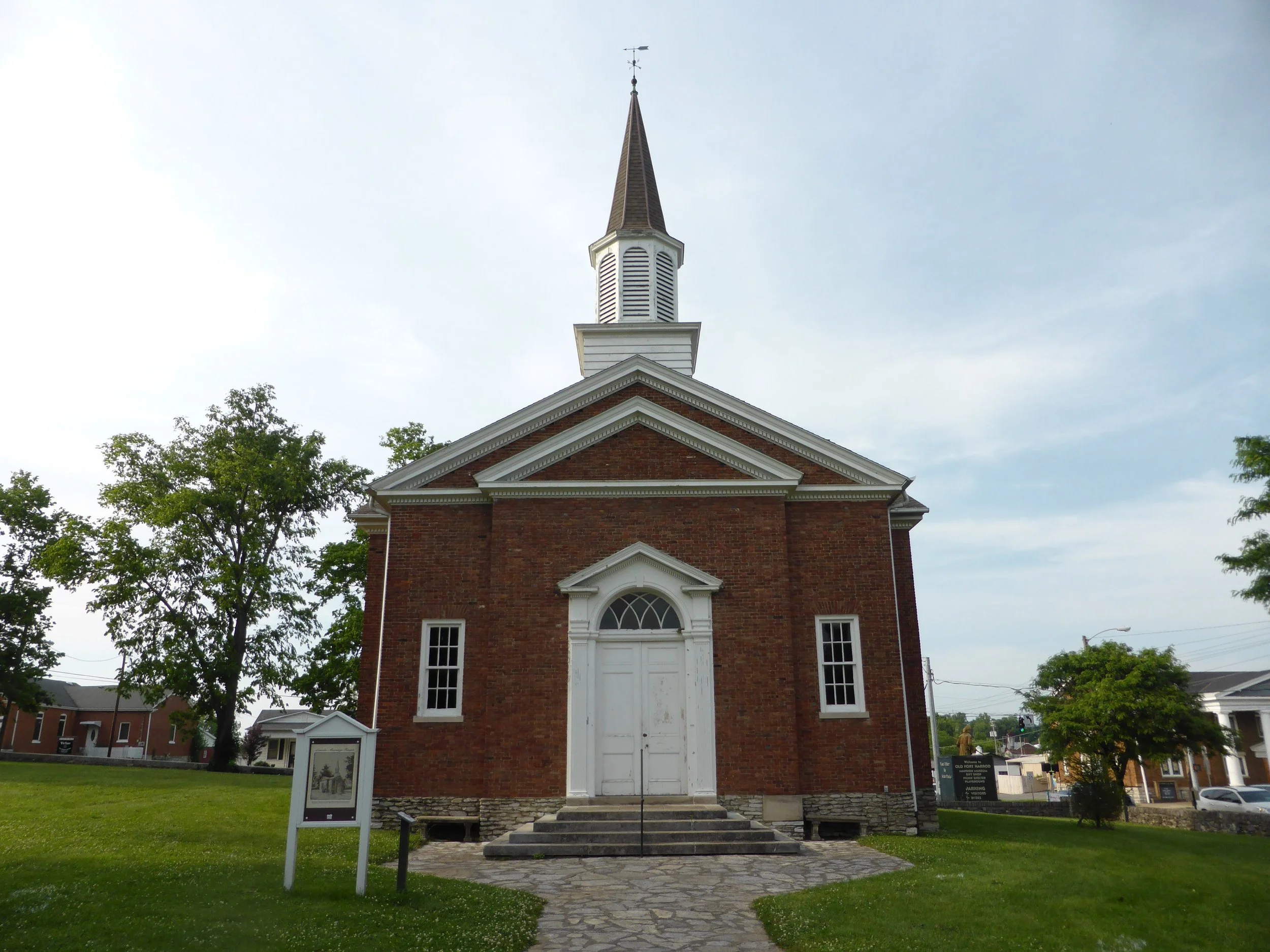 We night stopped in Harrodsburg, the first permanent settlement in Kentucky and fortunately we were there in good enough time to have a look around. There was evidence that this part of Kentucky had been hit by last night's storm much harder than Berea, with several fallen trees. But for the first time we felt like we were in a 'proper' town with a Main Street, shops - and people about! Some interesting historical buildings including a reconstruction of Fort Harrod and a fascinating Pioneer Cemetery with unnamed headstones marking the graves of early settlers here. Close by was a rather grand building, the Lincoln WeddingTemple, a church-like building inside which the wooden chapel in which Abraham Lincoln's parents were married has been placed (although the next day we discovered there is some doubt over its authenticity and it may in fact be the cabin in which they spent their first night together). All a little odd. I wonder if the honeymoon suite where David Cameron's parents spent their wedding night is stored in a warehouse somewhere waiting for future generations to enjoy. Let's hope not.