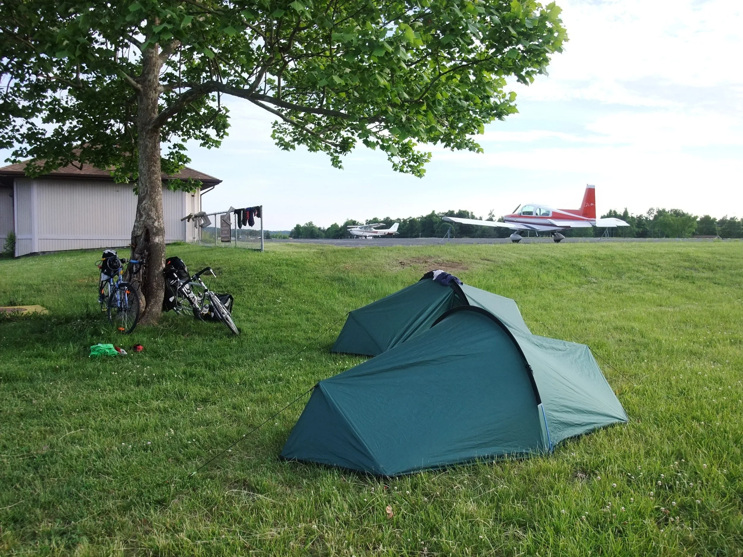 Just short of 70 miles we hit our destination - The Falls of Rough - a state park with assorted rivers and lakes attracting weekenders in their droves with campers, jet skis and float boats. It was so busy the main camp site was full, but there was space camping by the airstrip, so we put our tents up at the end of the runway. Another first! Oh and we've cycled our first 1000 miles! Only 3000 odd to go.