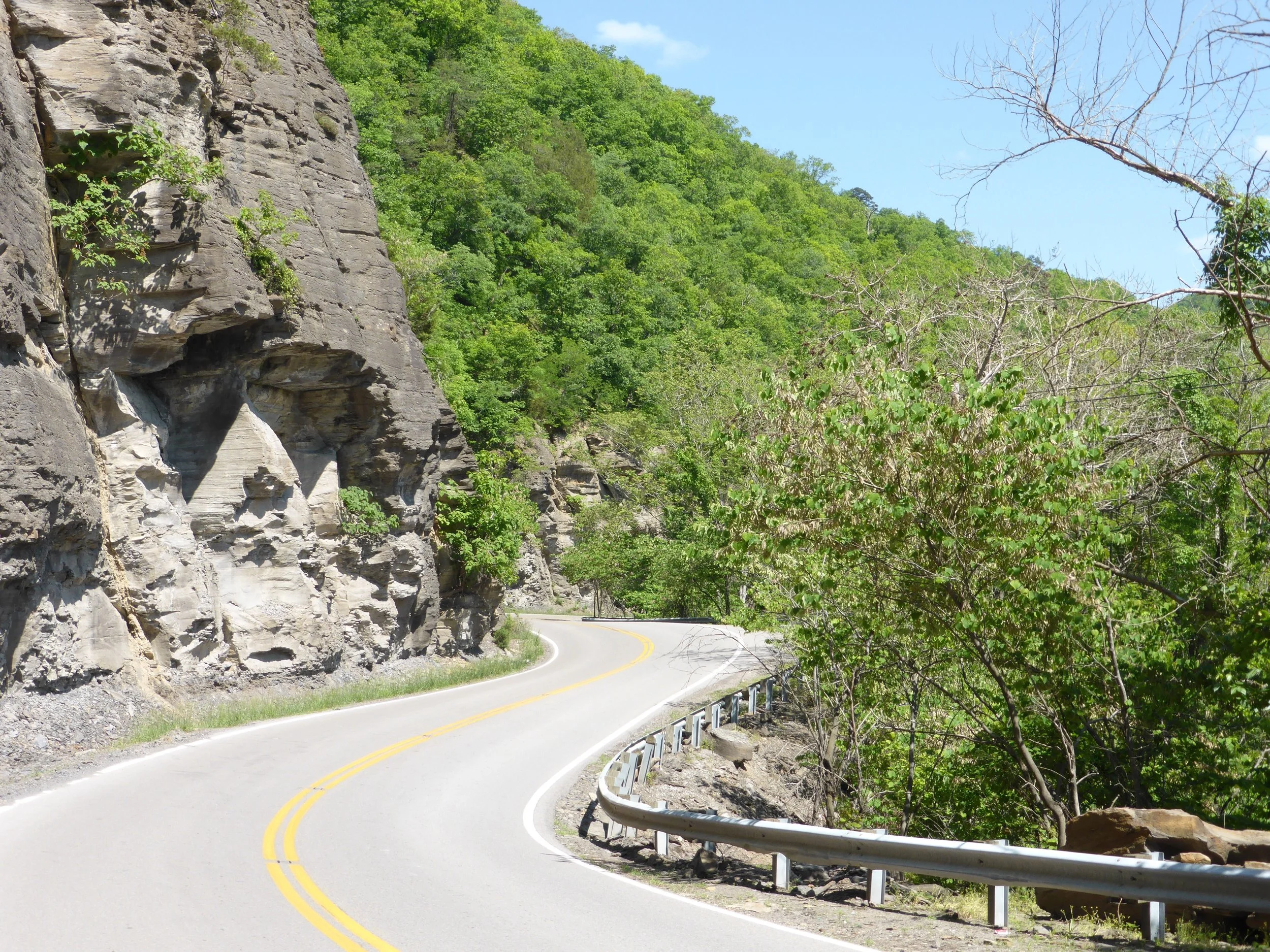 We ate our feast of artificial food and fruit overlooking Lick Creek and the new green of the forest trees. It was a glorious view. We then rolled on to Haysi where the fun stopped as the SR80 turned upwards for the last 10 miles of our ride through Virginia. And what a way to leave the 'State for Lovers' (their phrase not mine) ... stunning views over Breaks, the 'Grand Canyon of the South'.