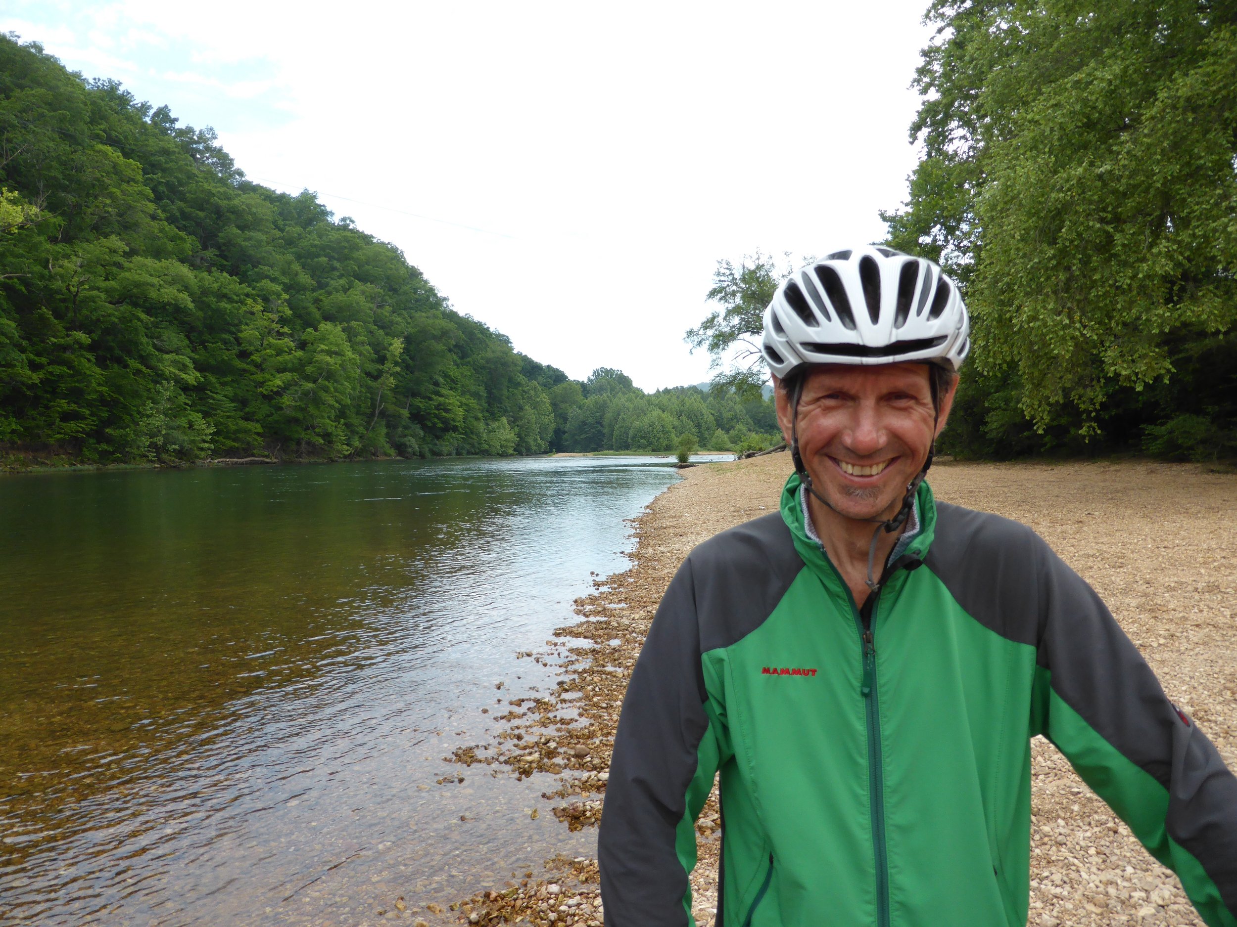Talking of which we were back into climbing mode ourselves on the road from Ellington to Eminence. This 25 mile stretch was beyond doubt one of the hardest sections of the TransAm so far, numerous steep hills followed by fast descents time after time - and never enough momentum on the way down to push you far enough up the next climb. At one point I noticed the Garmin was registering 2.1mph - I really didn't know you could ride that slowly without falling off. Hot exhausting and never ending - although a detour at Powder Mill to gaze into the crystal clear mountain waters proved a welcome relief.