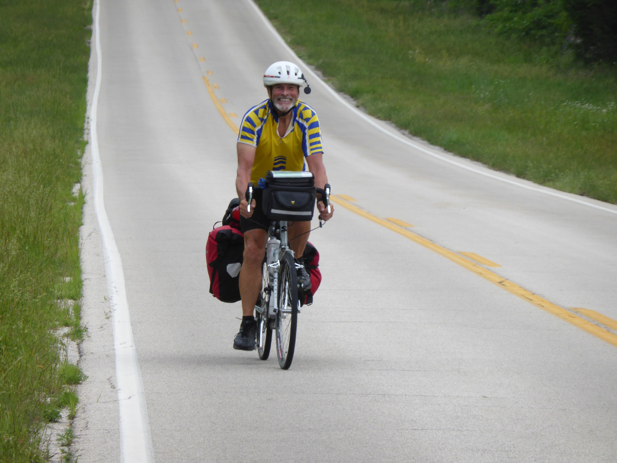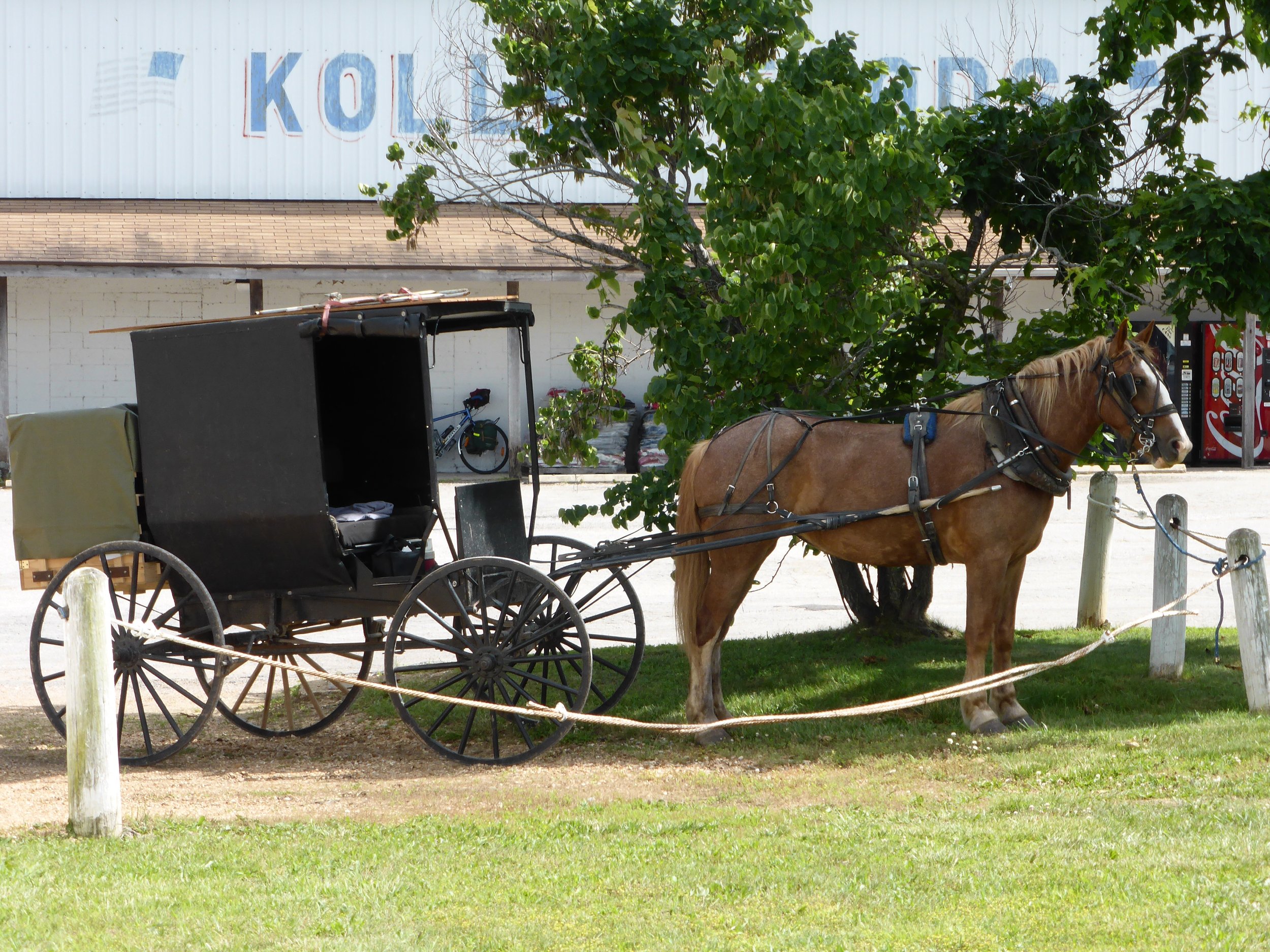 We ate a late breakfast at 'Maggies' in Emminence before continuing onto our destination, rather bizarrely named Houston in the county of Texas. En route, and not content with climbing on our bikes, we climbed a fire control tower to wonder at the beauty and scale of the Ozarks below and ate lunch with Louis in Summerville where we feasted on strawberries bought from an Amish mother and two children, their buggy parked in the shade of a shut down service station. I would have liked to have chatted to her, but was unsure of the protocol, but she did tell me a little later she had sold all the strawberries and she and the children waved goodbye to us as she drove the black horse drawn buggy out of town. We followed for a while on our bikes, a strange sight seeing a horse-drawn trap alongside giant American lorries. Truly a country of contrasts.