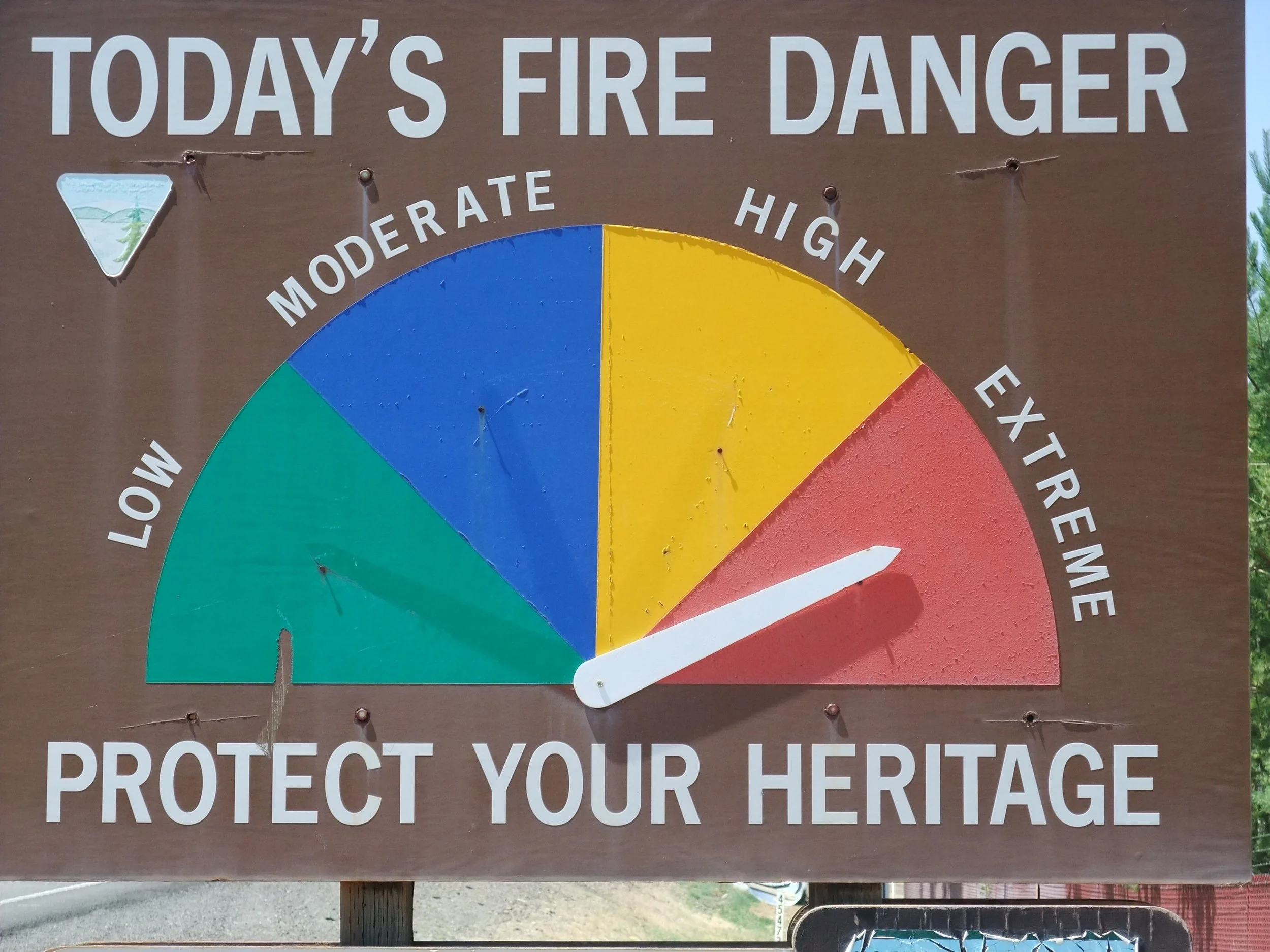 The rest of the day's miles into Dayville were spent gawping at the geology on either side of the plateau ... millions of years of upheaval and erosion by wind, rain and river creating flat top mountains and odd pinnacles. The 'extreme fire risk' warning sign marked our arrival into the neat little town ... well, it had been very hot and dry for over a week now ... and we were soon to find out why they put those signs up. Unlike a lot of the small places we've been through though, Dayville was making an effort ... only the size of a small English village, it boasted a humourus mock 'old town' facade, flower displays galore, a dinky little city hall and a 'historical' wooden community hall from the 1920s.