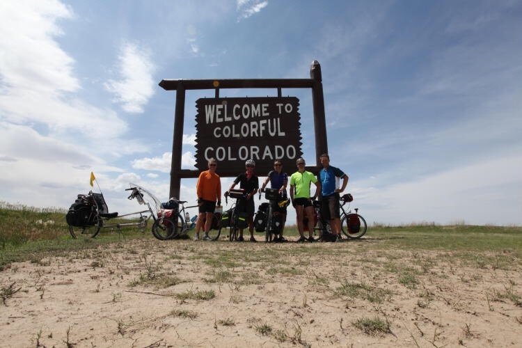 Sixteen miles later and we were in Colorado, our sixth state and a great excuse for photos. Mind you we were still on the same road - the 96 which we have followed for more than 300 miles. On route today we met our first true West-East TransAm cyclist, Zane, from Eugine, Oregon. A good tailwind took us into Sheridan Lake (which looked rather like an Antarctic base) and half and hour later all hell broke lose.But there is always an upside and this one was great - 12 TransAm cyclists, sheltered together in church for the night eating food (Terry and I grabbed Pizza from the local convenience store) and swopping trail stories.Today's miles: 76Miles since First Landing: 2134